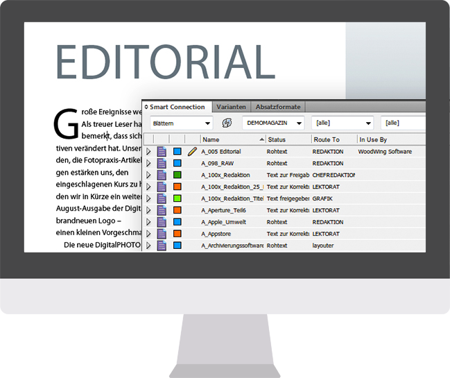 Wir bear­beiten die Seiten mit der auch von Ihnen ver­wen­deten Soft­ware (z. B. Adobe® InDesign®, Quark­XPress®).